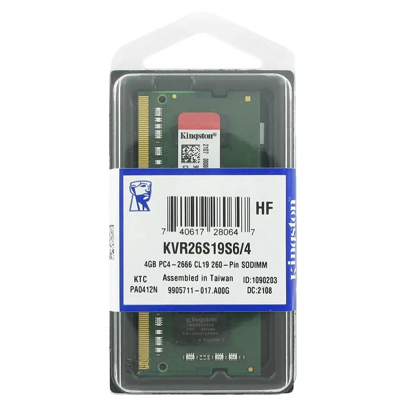 KINGSTON 4GB / 2666 MHz DDR4 PC4-CL19 260-Pin SODIMM Notebook RAM [ KVR26S19S6/4 ] ( 1.2V )