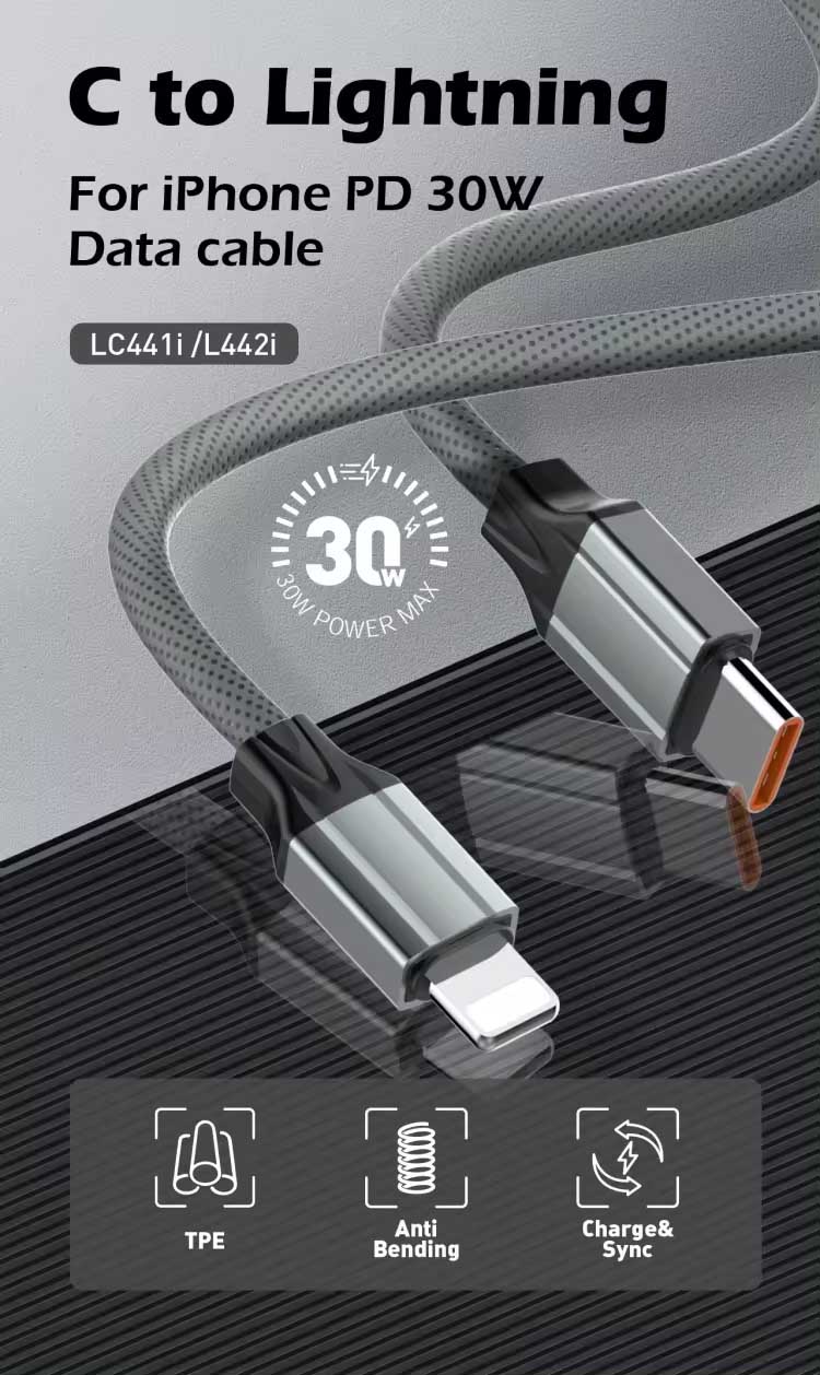 LDNIO 30W Type-C to iPhone Lightning Fast Charging Cable (Grey / 1m) [ LC441i ]